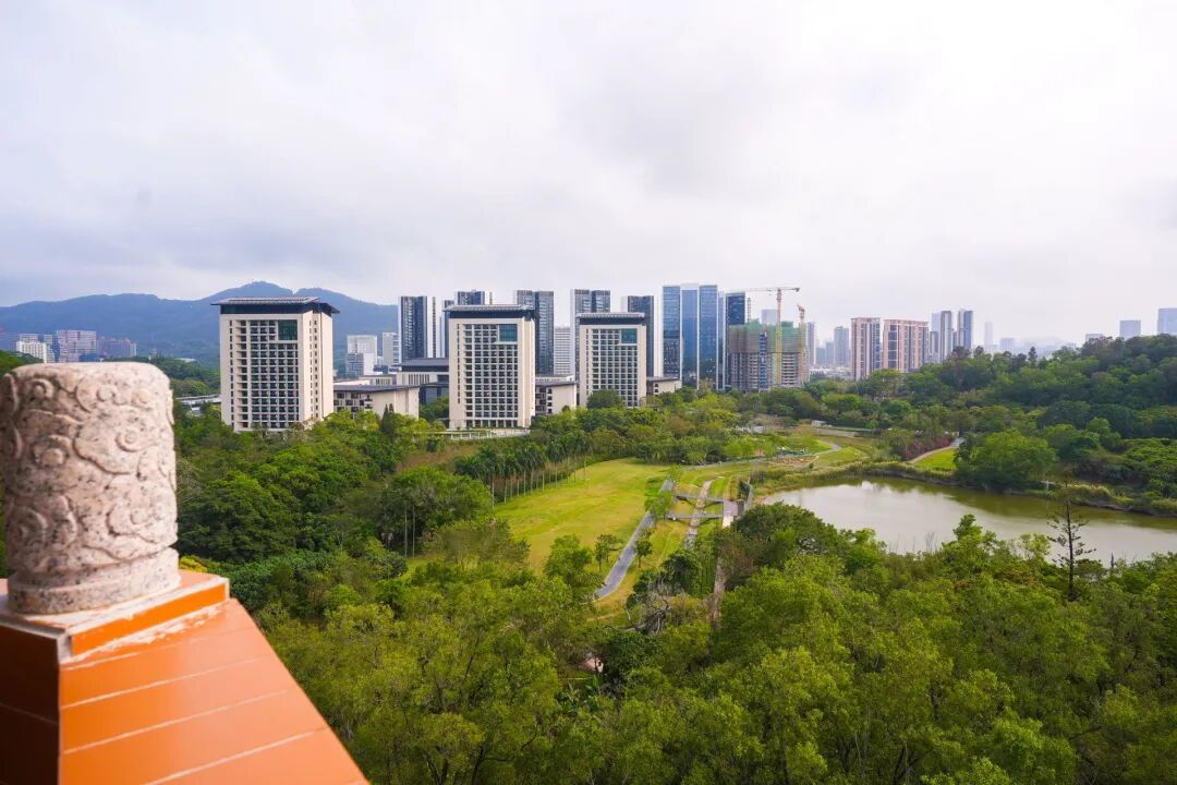 登上西丽塔最高层,360度无死角的观景视野令人沉醉。西丽水库碧波万顷的全貌一览无余;阳台山层峦叠嶂、塘朗山青翠连绵,好山好水的自然盛景近在眼前;西丽湖国际科教城的城市风貌与湖光山色交织,勾勒出独属于深圳的“山水城林”画卷,微风拂面,令人心旷神怡。