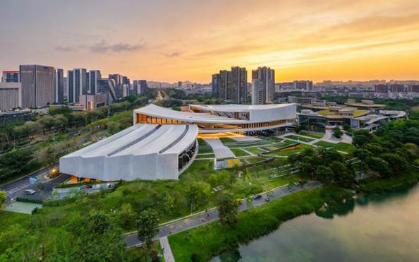 松山湖展演中心总建筑面积45000㎡,设有1200座大剧院、400座多功能厅、3500㎡展厅和1200㎡美术馆,为市民提供高品质文化体验的同时,也为大湾区文化交流搭建起重要平台。
